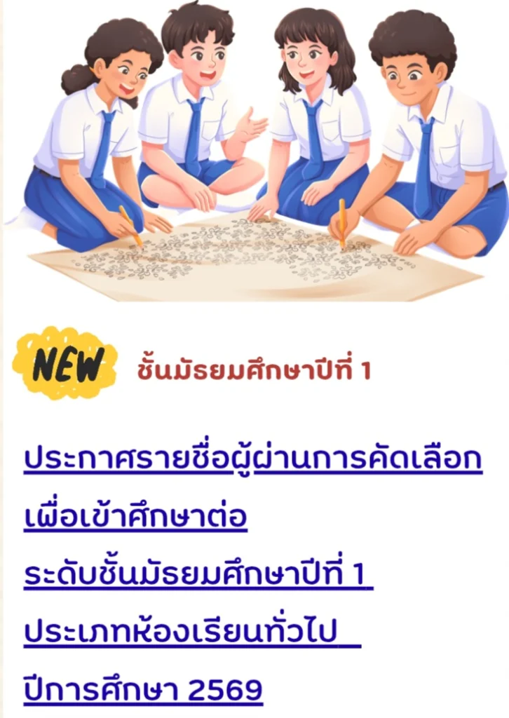 ประกาศผลสอบคัดเลือกม.1และม.4 รอบทั่วไป โรงเรียนเชียงคำวิทยาคม